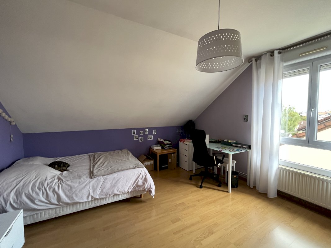 de 4 chambres à coucher, d'une salle de bains avec douche et baignoire et 2 WC. Un garage pour 2 voitures, une terrasse et un jardin arboré complètent notre bien situé sur un terrain de 558 m2.