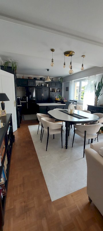 - une pièce de vie très lumineuse ( 3 grandes fenêtres ) de 41m2 avec séjour , sam et cuisine équipee ouverte