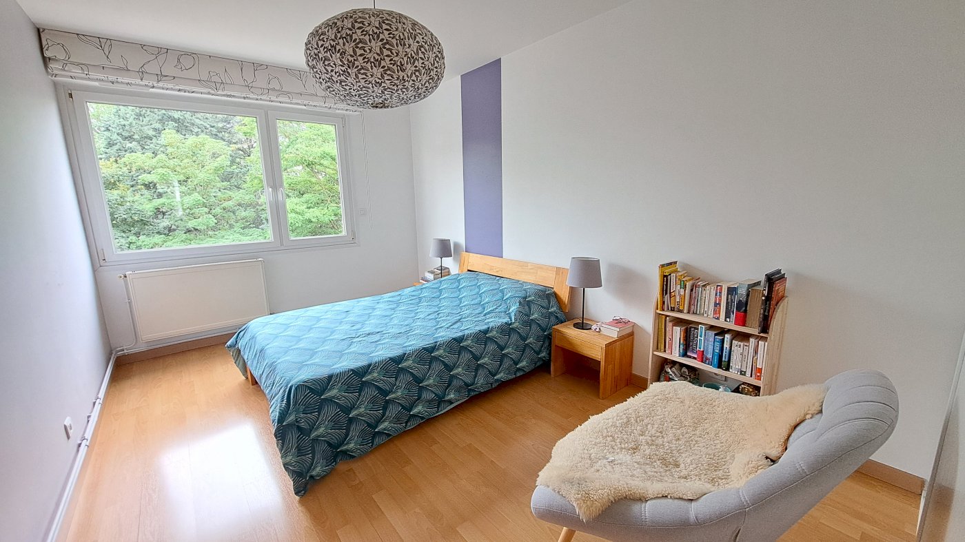 Il comprend une entrée, un dégagement avec un grand placard, un salon/séjour d’environ 36 m², une cuisine équipée avec cellier, trois belles chambres (14, 12 et 11 m²) équipées de placards intégrés, une salle de bain meublée, un WC, un débarras qui peut faire office de dressing et un balcon.