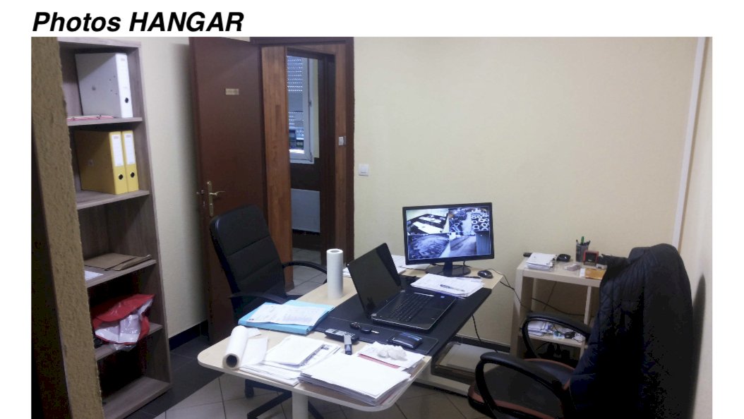 Le Local est composé d'un hall de 150 m2 et 40 m2 de bureaux, une cuisine, 1 WC et une douche,