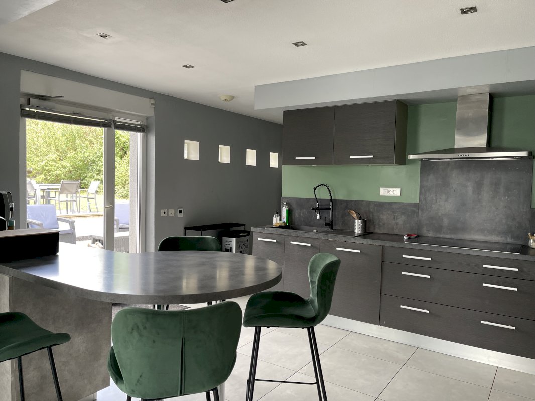 • Espace jour : cuisine équipée (électroménager Neff récent) de 14 m² avec cellier attenant, ouverte sur un lumineux séjour/salle à manger de 40 m² avec grande hauteur sous plafond.