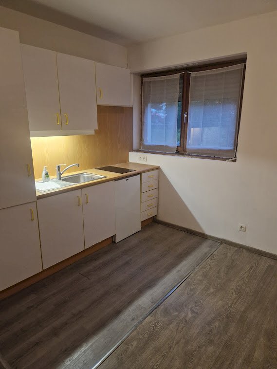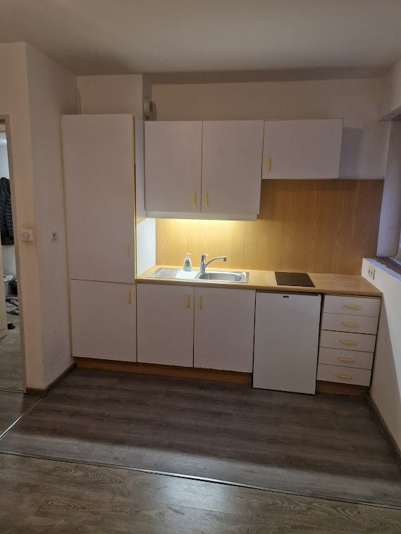 Composé d'un séjour avec cuisine et d'une salle de bain avec toilettes