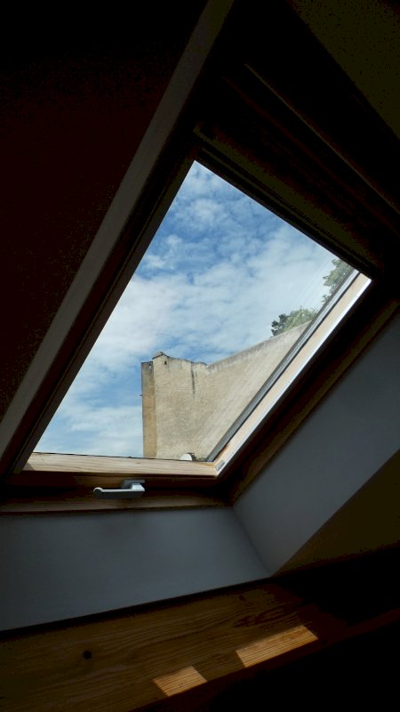 Au 2ème étage une grande chambre avec fenêtre et 2 velux de 23,7 m² ainsi qu’une deuxième chambre de 12,7 m² avec fenêtre et velux.