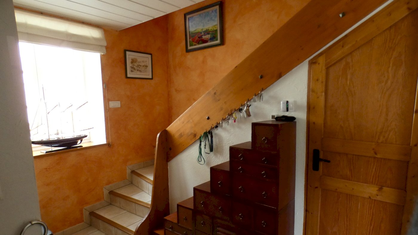 La maison se compose au Rdc, d'une entrée, d’un wc avec lave-main, d’un séjour/salle à manger donnant sur une cuisine ouverte entièrement équipée.