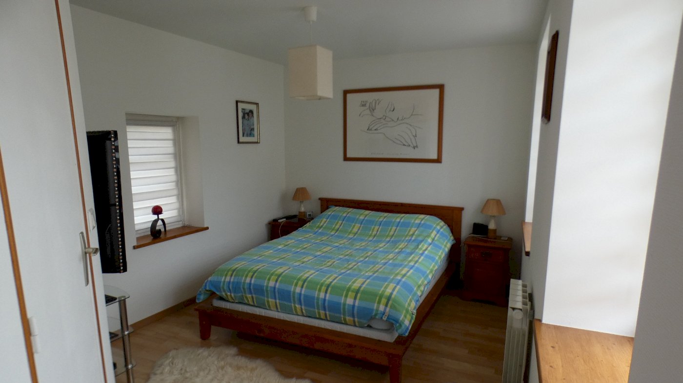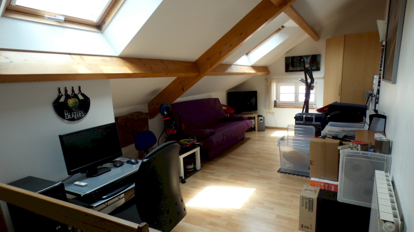 Au 2ème étage une grande chambre avec fenêtre et 2 velux de 23,7 m² ainsi qu’une deuxième chambre de 12,7 m² avec fenêtre et velux.