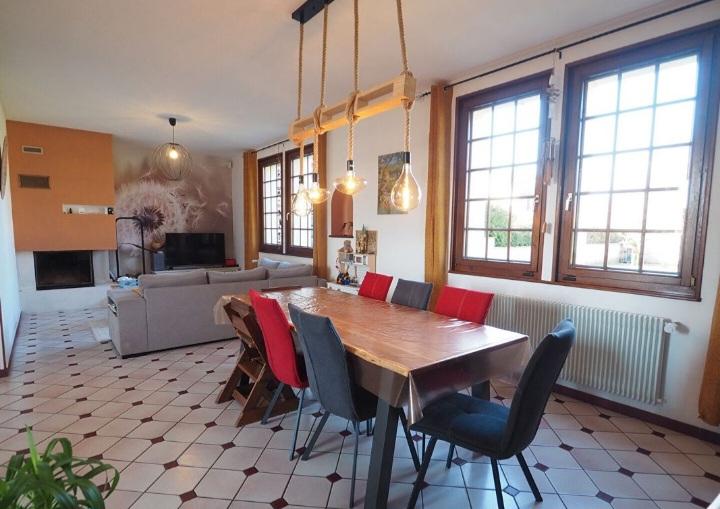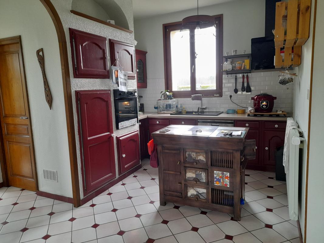 Magnifique maison de 130m² spacieuse et lumineuse sur une parcelle de 1 470m² située dans un quartier en impasse: entrée, cuisine entièrement équipée ouverte sur salon/séjour (cheminée), et wc séparé.