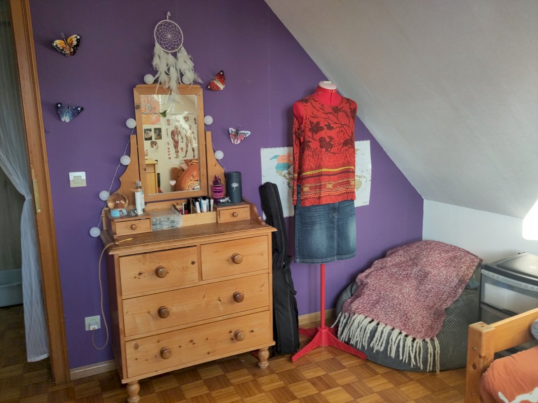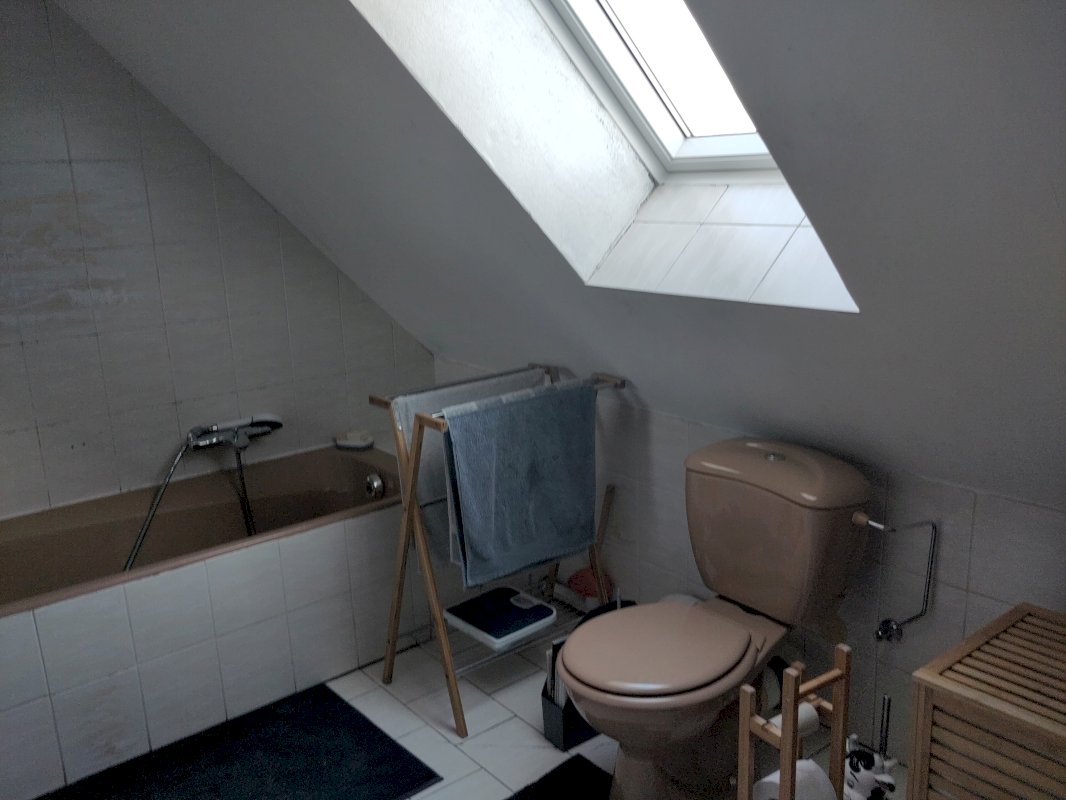 • 1er étage : 3 chambres et 1 grande salle de bain avec WC et baignoire, 1 balcon.