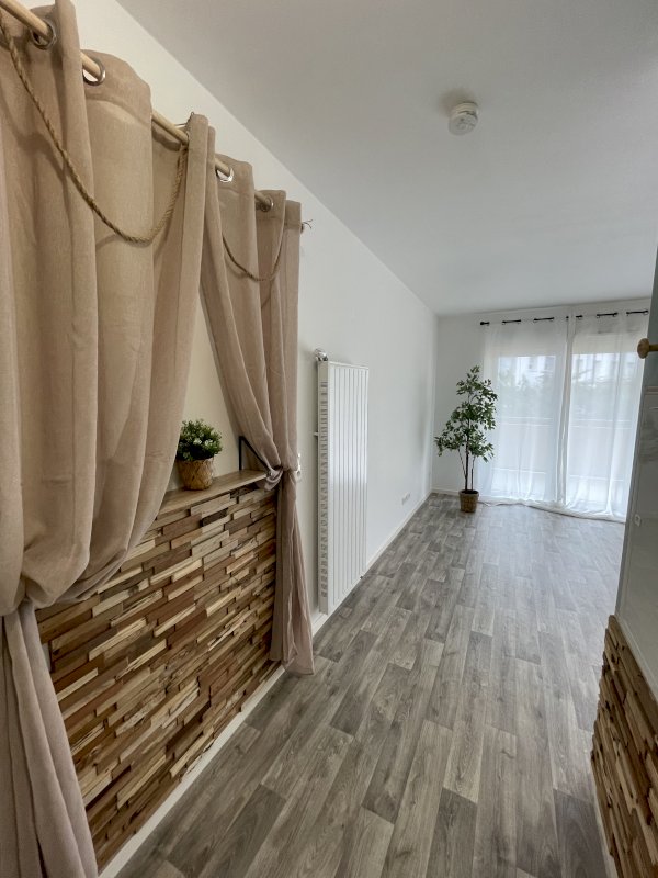Enfin une très belle chambre de 12m2 avec sa tête de lit originale et son dressing ainsi que sa salle de bain comprenant une douche moderne , meuble vasque et sèche serviette d'une sup de 4,45m2.