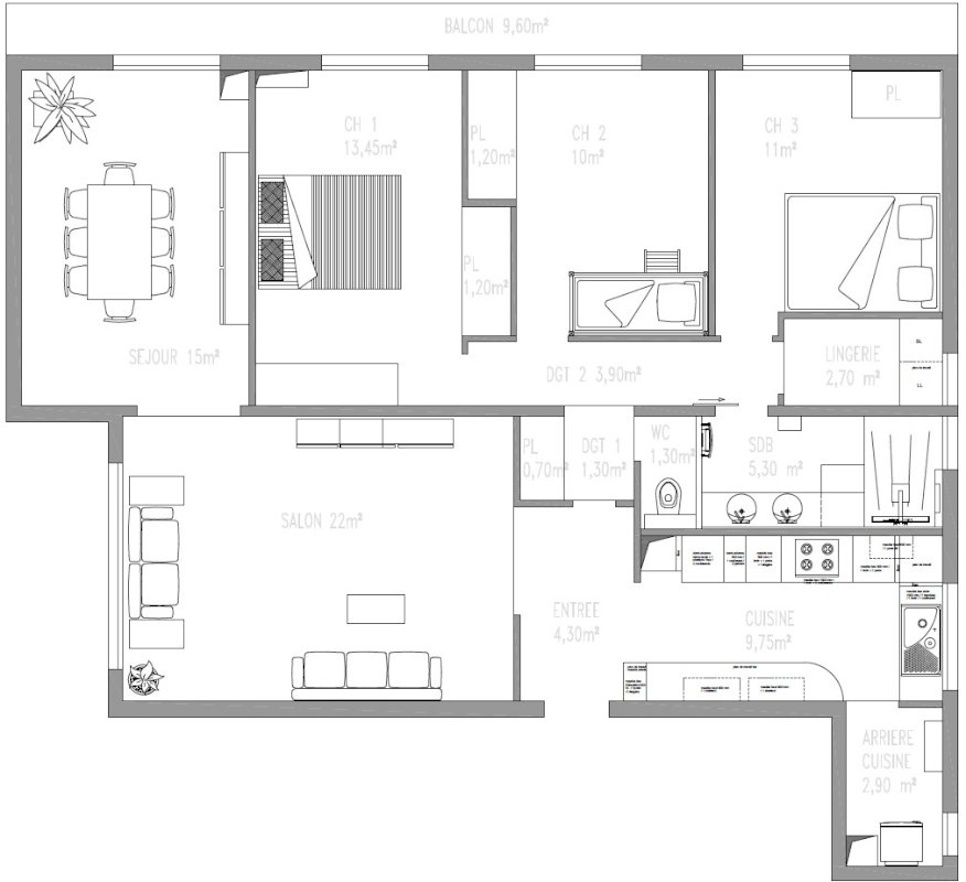 L’appartement offre de 3 belles chambres (14, 11 et 11 m²) avec placard, une entrée avec placard, une salle d’eau avec grande douche à l’italienne, une buanderie et un WC séparé : un agencement parfaitement adapté à la vie de famille.