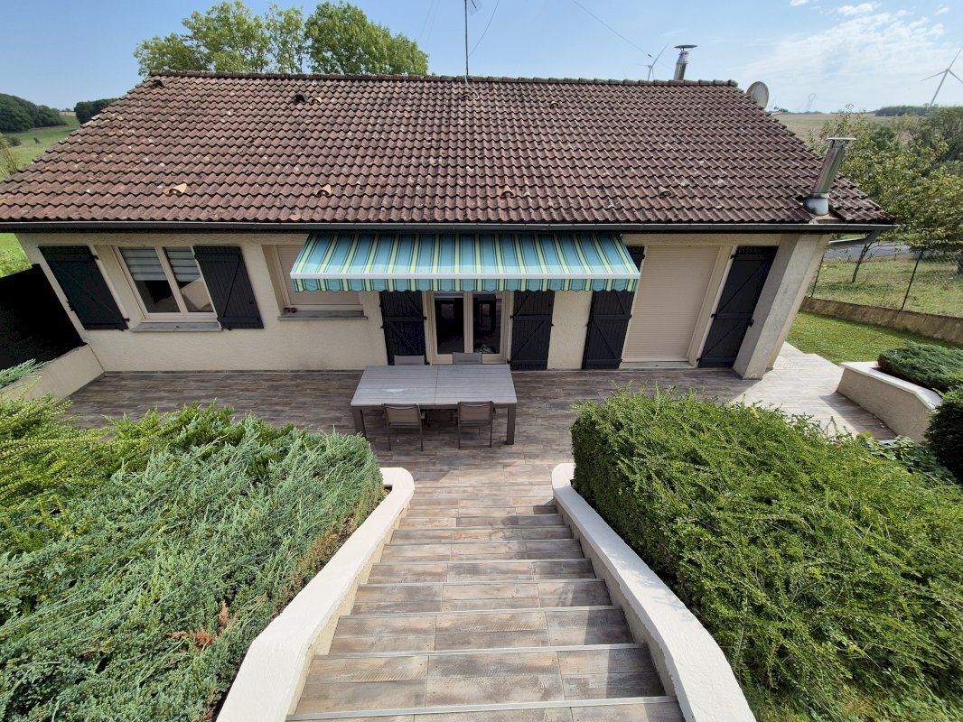 Situé sur la Voie Sacrée à 12 km de Bar le Duc avec un transport scolaire régulier et ligne de bus Verdun/Bar le Duc. Pavillon individuel entièrement rénové sur sous sol total sans voisin proche avec dépendance de 45 m² et chalet de 10 m².