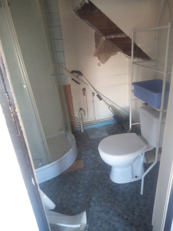 • Au 1er : un studio de 20 m² environ avec à côté une salle de bain avec WC douche et lavabo. À rénover.