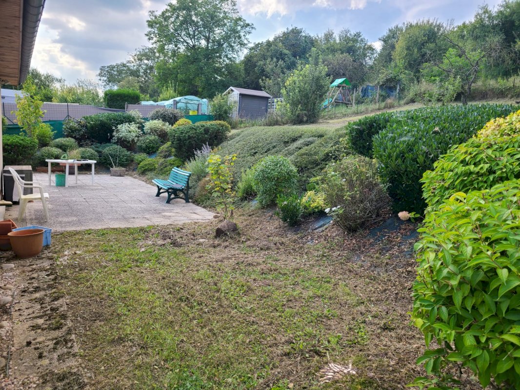 Vous pourrez profiter des beaux jours sur une grande terrasse bordée par une butte fleurie et d'un petit verger.