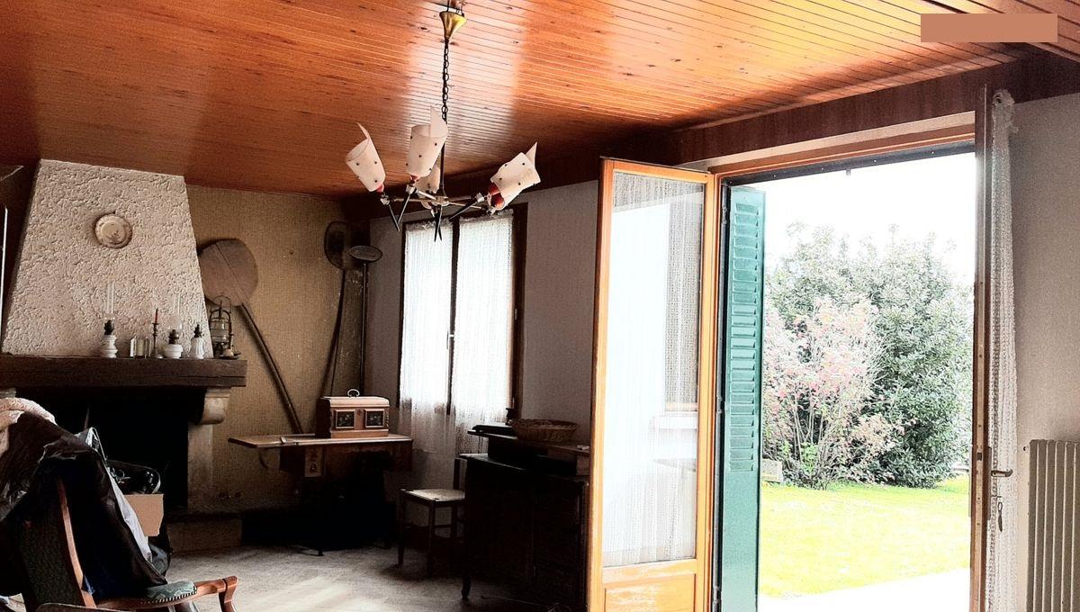 Elle se compose au Rez de chaussée d'une entrée desservant une cuisine de 17 m², d'un sejour salle à manger de 29 m² avec cheminée ouverte, d'une chambre avec parquet, d'une salle de bain et wc séparé.