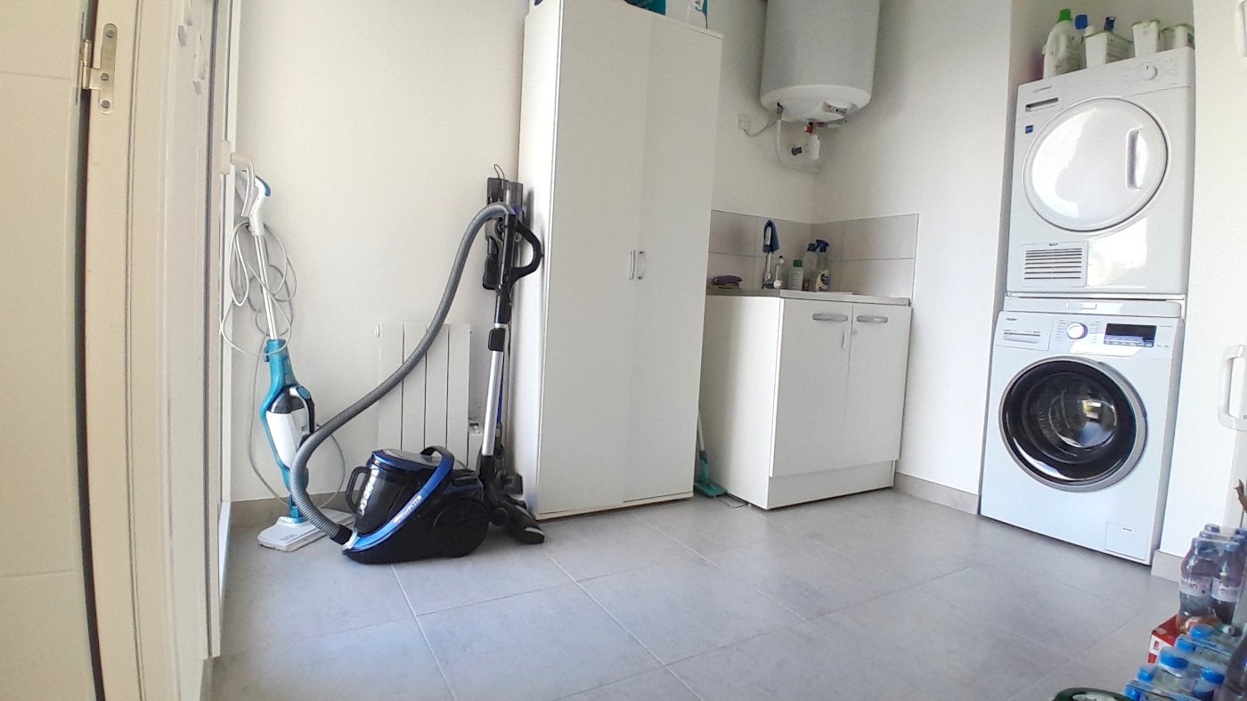 Egalement à ce niveau, une extension dont la construction a été achevée en 2022 comprend une buanderie de 7m² avec accès à la terrasse, ainsi qu'une grande chambre de 17m² avec sa salle d'eau et sa douche à l'italienne, donnant sur une seconde terrasse située à l'avant de la maison.