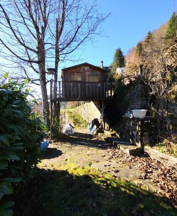 De l'espace cuisine salon on accède à une cour qui permet d'accéder au 2ème atelier à aménager. De cet atelier on accède au jardin en terrasses : une terrasse avec une cuisine d'été à rafraîchir, un four à pain, un barbecue et une cabane pour enfants ; vous trouverez au niveau de la deuxième terrasse un bassin avec des poissons rouges ainsi que des espaces pour un potager. La dernière terrasse est composée d'arbres fruitiers, ainsi que des espaces de culture. Le jardin en terrasse ainsi que la maison sont exposés plein sud.