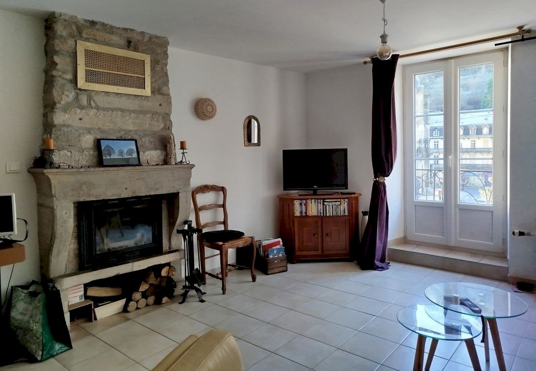• A l'étage, vous entrez dans la cuisine ouverte sur salon avec cheminée. Depuis le balcon on peut voir l'église.