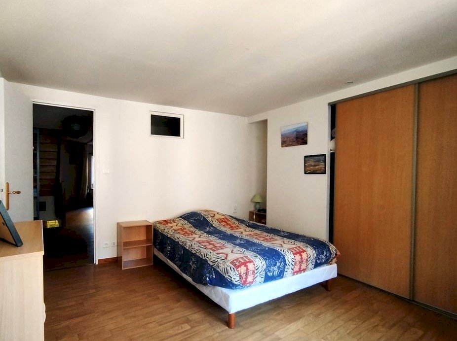 • L'entrée depuis la rue vous permet d'accéder au studio aménagé : petite cuisine ouverte sur salon, une chambre, salle de douche et WC séparés. Du studio vous avez acccès à un atelier avec une source qui permet d'alimenter le jardin en terrasses grâce à une pompe.