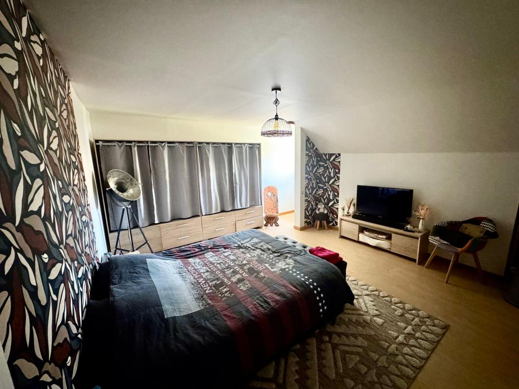 Une grande salle de bain avec baignoire, douche et placard complète l'ensemble.
