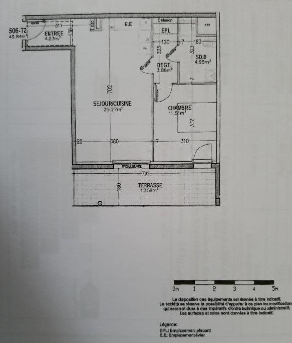 L'appartement de 49,60 m² est composé : d'une entrée donnant sur le salon séjour avec accès balcon 12 m² une cuisine équipée ouverte, un dégagement, 1 chambre, une salle d'eau avec wc.