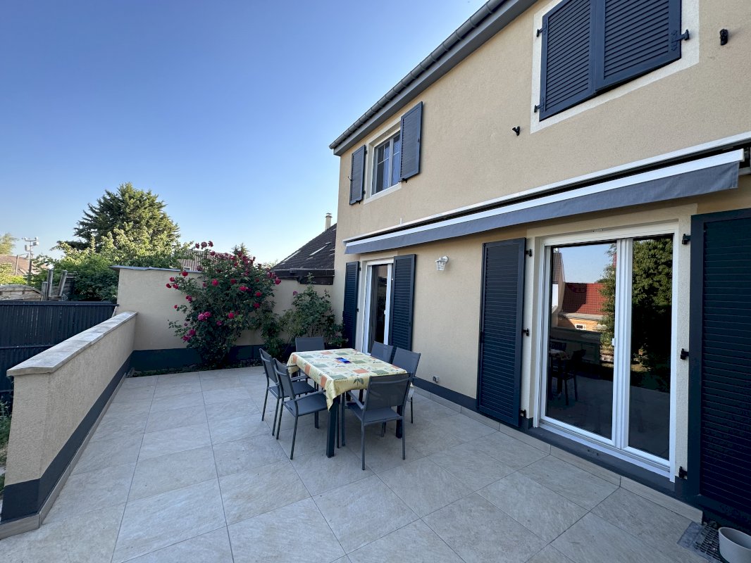 Particulier vend maison accolée d'environ 90 m2 sur 2,30 ares. Le rez-de-chaussée est composé d'une cuisine équipée ouverte (refaite en 2020) sur la salle à manger et le séjour, d'un WC. A l'étage, 3 chambres, 1 coin bureau, une salle d'eau avec WC et meuble double vasque. Jardin, terrasse d'environ 30 m2, sous-sol complet, garage, parking privé. Idéalement situé près des écoles (maternelle, primaire) et collège.