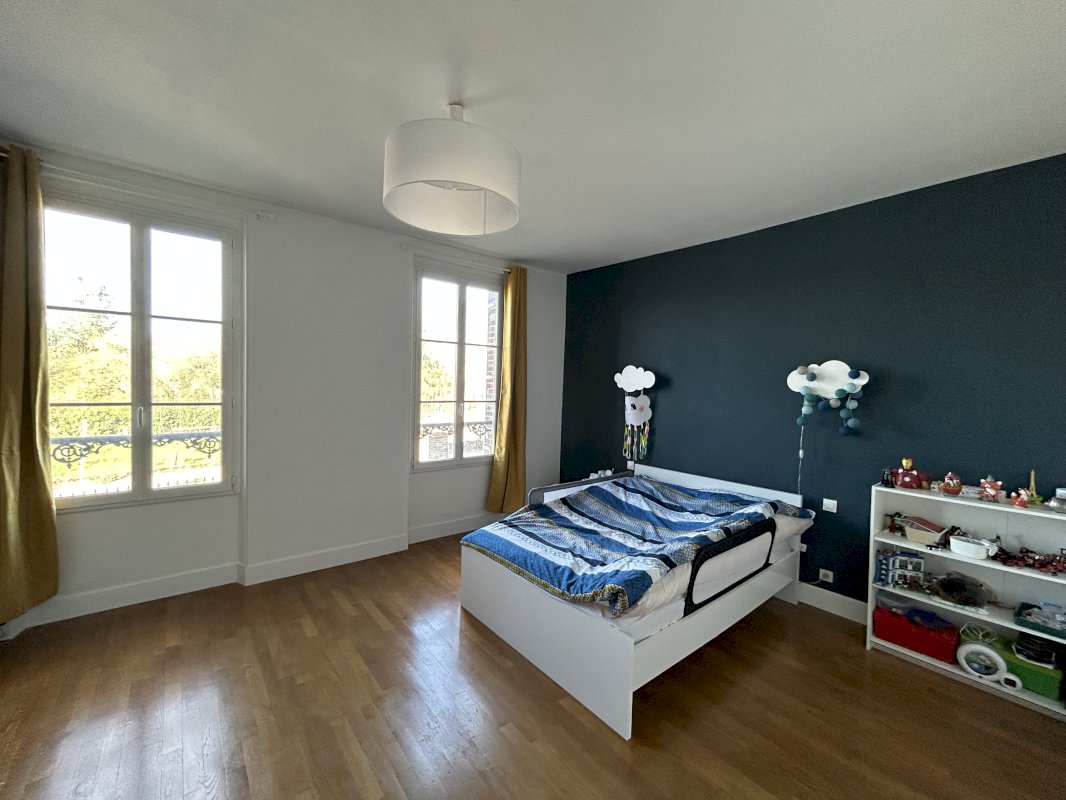 Au premier étage, le palier dessert d’un côté une salle de douche avec WC et une suite parentale de près de 25 m² avec sa salle de bain double vasque. De l’autre côté, le couloir vous mène à deux chambres de plus de 20 m² chacune ainsi qu’un bureau.