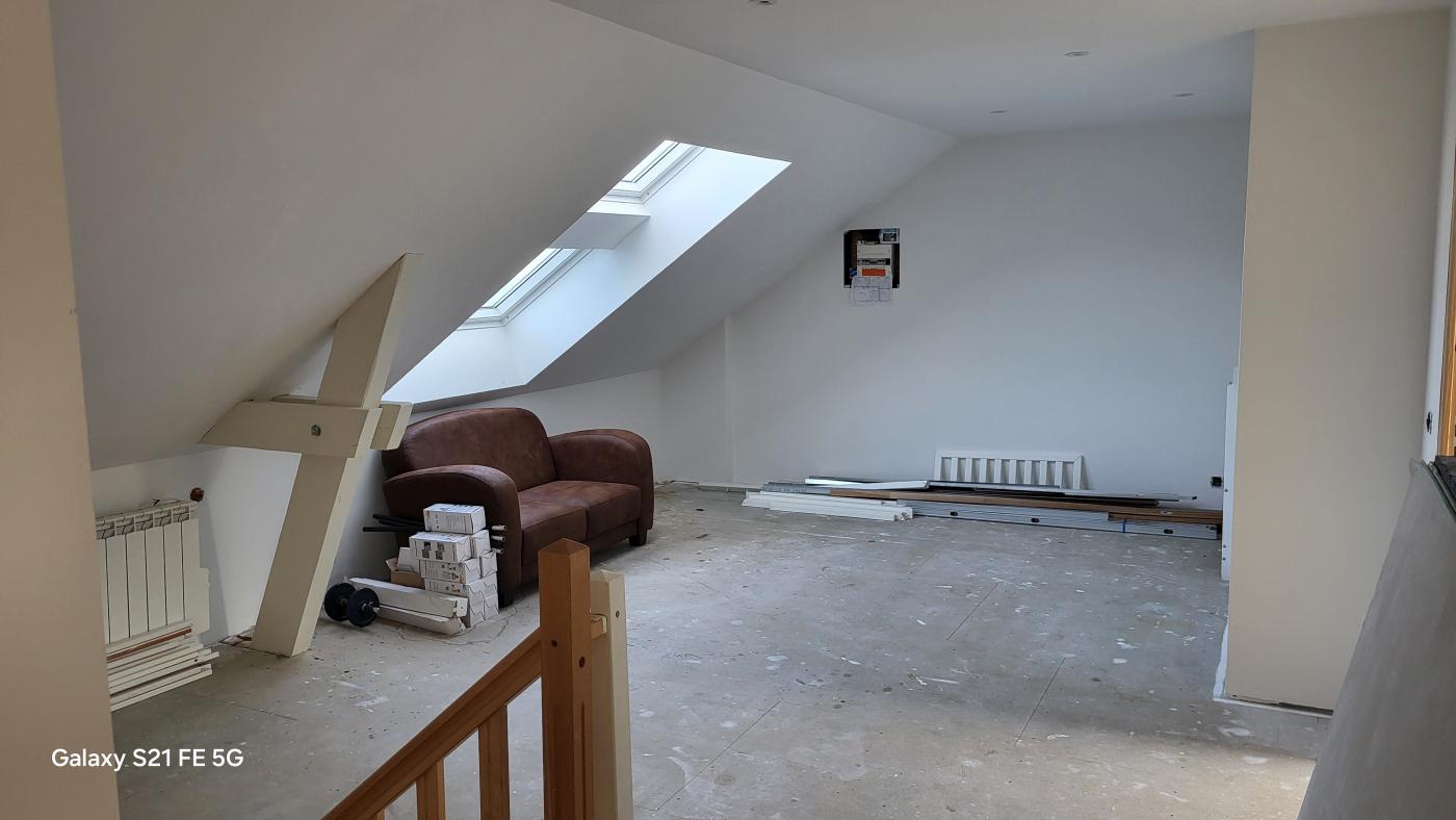 • Salle de bains avec WC (travaux de finition à prévoir : pose du plancher et aménagement de la SDB)