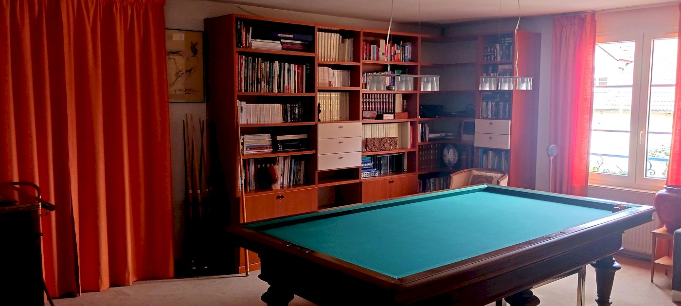 - à l’étage, l’espace nuit et loisirs accueille 1 suite parentale avec grands dressings et salle de douche privative, 4 chambres, 1 salle de bain avec douche et baignoire, 1 salle de jeux avec enceintes Cabasse et écran home cinéma/ billard/ bibliothèque, 1 salle de fitness.