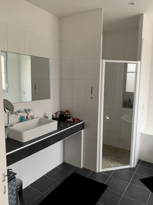• L'étage offre 4 grandes chambres dont une de 44 M2, deux salles de bain, et une pièce de vie supplémentaire.