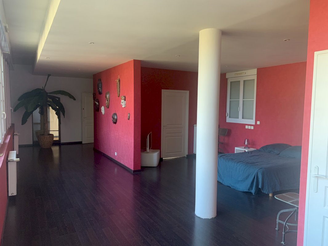 • L'étage offre 4 grandes chambres dont une de 44 M2, deux salles de bain, et une pièce de vie supplémentaire.