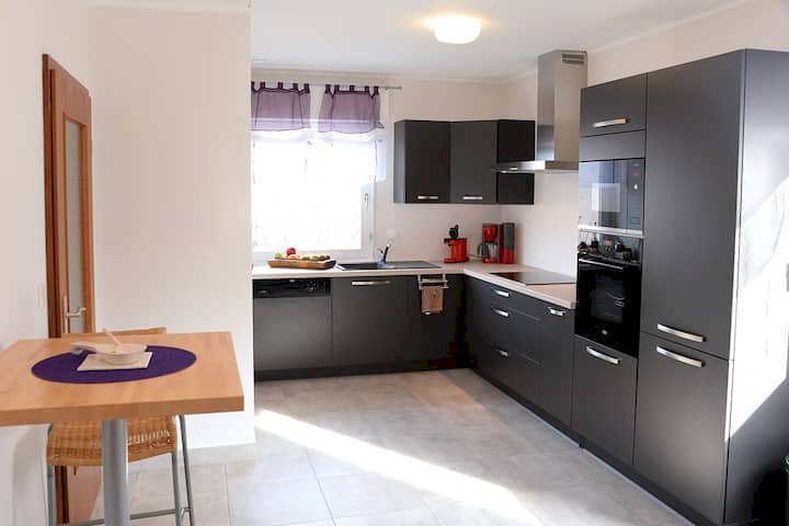 Cuisine équipée moderne , grand salon, salle à manger, 4 chambres (2 au Rdc, 2 à l'étage)