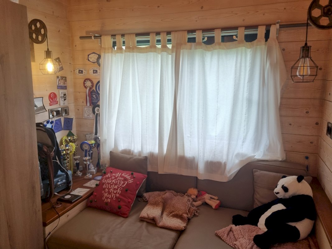 Tiny house tout confort toute équipée. À voir ! Elle a 2 ans et son prix initial est 85000 euros avec la livraison.