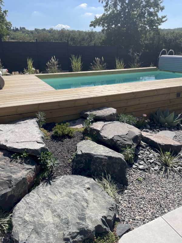 Un cabanon de type conteneur viendra compléter ce jardin avec la possibilité de l’utiliser comme stockage ou de le transformer en PoolHouse.