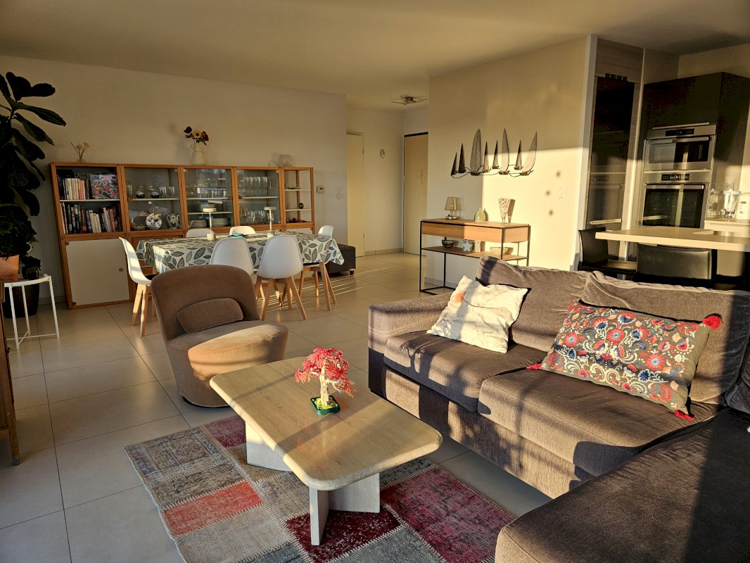 Comprenant : Entrée avec placard, salon-séjour avec cuisine équipée donnant sur un grand balcon (14,70 m2), suite parentale de 20 m² avec placard et salle de bains avec WC et accès à un grand balcon, (11,30 m2) 2 autres chambres avec rangements, salle de douche, wc séparé, cellier en rez-de-chaussée, en sous-sol: garage fermé automatisé + place de parking.