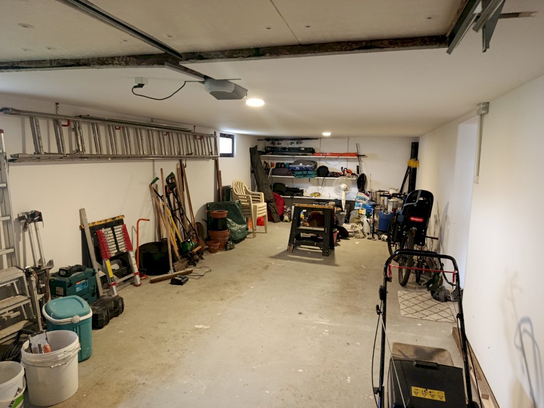 Au sous-sol : un grand garage de 37,65 m² avec une porte motorisée, un atelier de 16,53 m², une grande buanderie et un espace loisir ou bureau de 26 m². Ces surfaces offrent de multiples possibilités. Accès au jardin arrière.