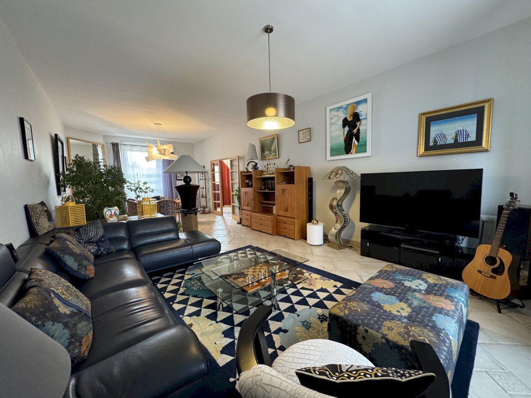 L'escalier qui monte sous un puits de jour au 2ème étage, amène à un vaste espace déplafonné de 80m2 avec bibliothèque et billard, éclairé par de très grands vélux électriques avec volets alu à détecteurs de pluie. La pièce fait office de 4ème chambre et peut facilement être transformée pour en faire deux chambres. Nombreux rangements en bas de toit et très beau volume à 3,60m sous faîtage. Une salle d'eau avec wc complète ce niveau.