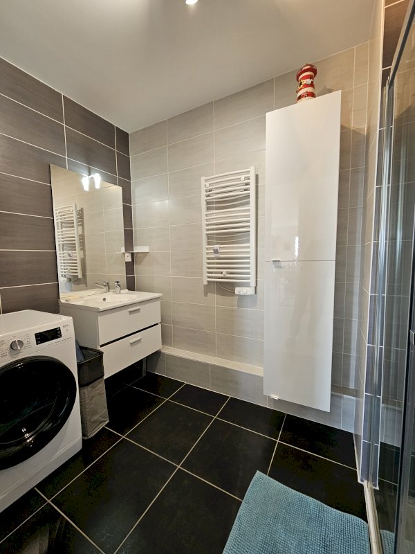 Comprenant : Entrée avec placard, salon-séjour avec cuisine équipée donnant sur un grand balcon (14,70 m2), suite parentale de 20 m² avec placard et salle de bains avec WC et accès à un grand balcon, (11,30 m2) 2 autres chambres avec rangements, salle de douche, wc séparé, cellier en rez-de-chaussée, en sous-sol: garage fermé automatisé + place de parking.