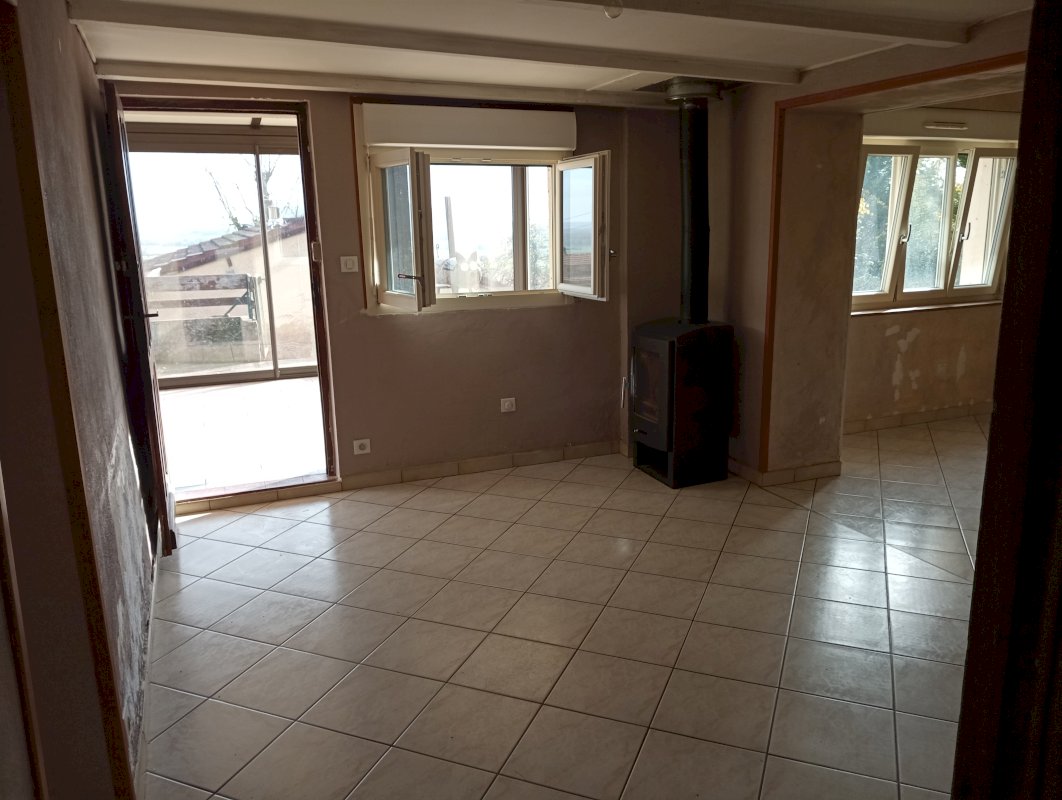 cuisine ouverte sur salon séjour, habitable de suite, chauffage bois (conduit de poêle) et éléctricité (convecteurs),