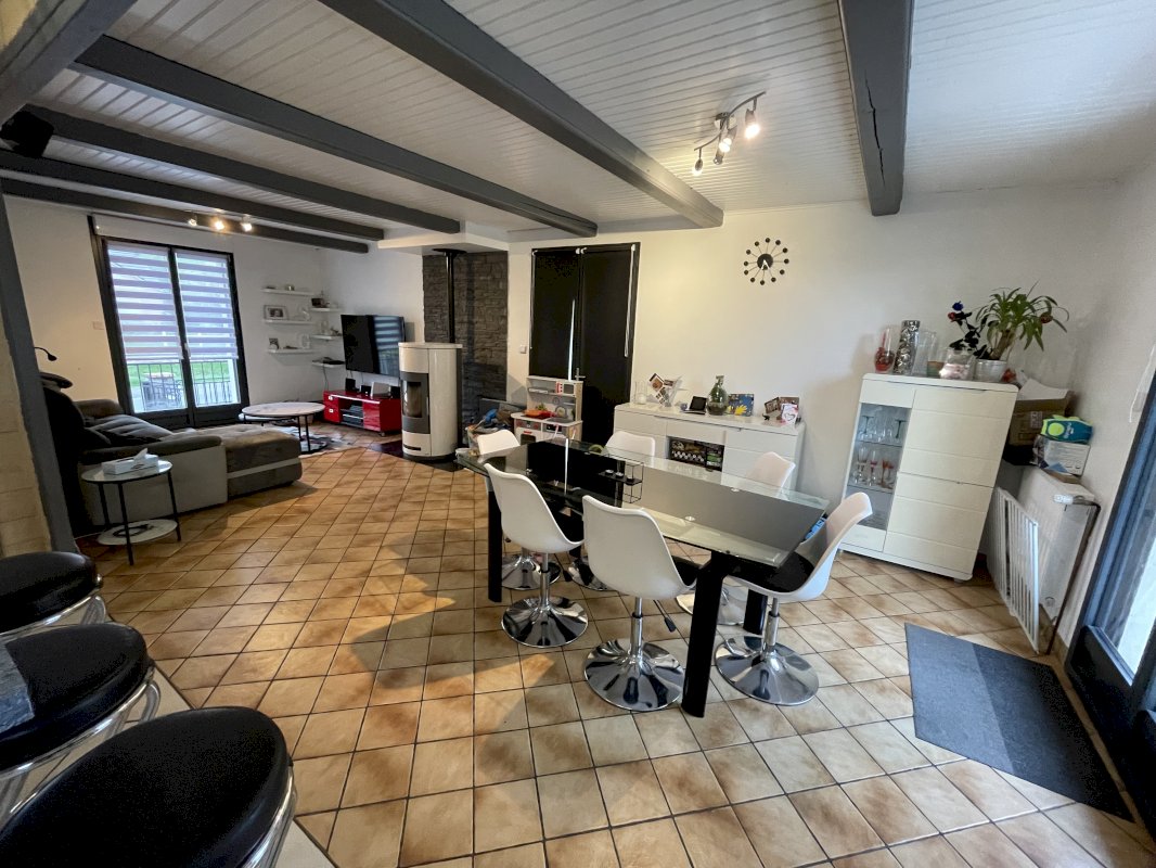 Cuisine ouverte sur salon salle à manger de 40m2 , donnant sur grande terrasse et véranda .