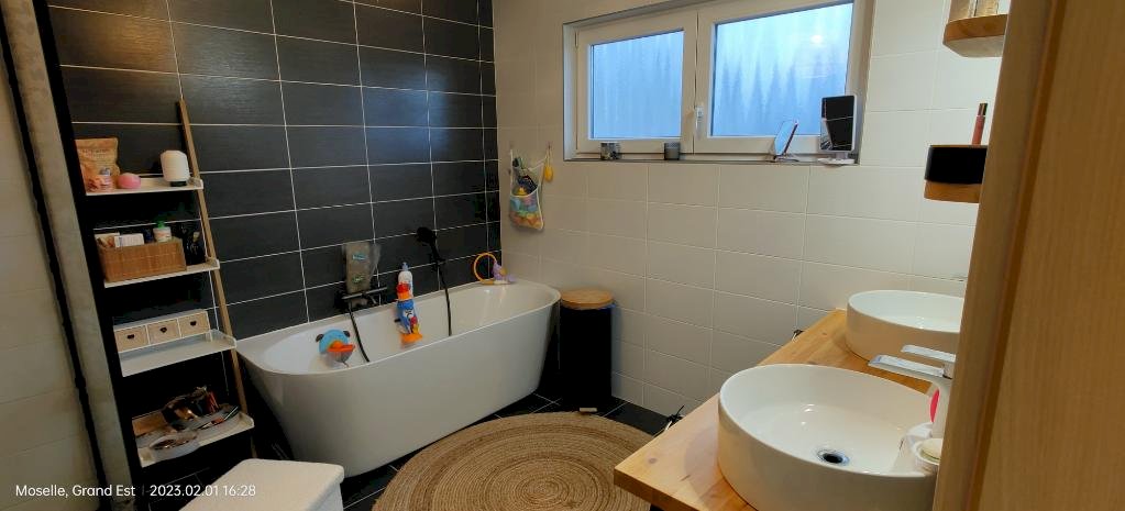 - 1 salle de bain avec douche italienne et baignoire.