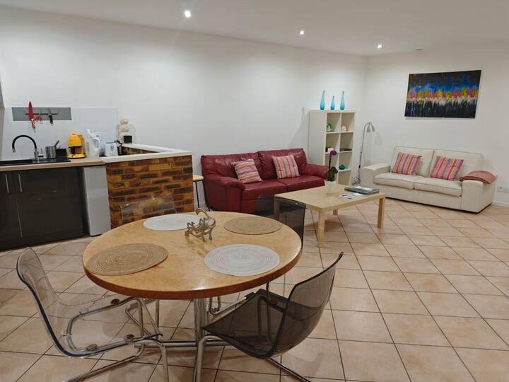 Entrée privée donnant sur une petite entrée. Grande pièce à vivre avec cuisine ouverte et équipée. Une pièce intérieure pouvant servir de bureau ou de buanderie. Une chambre. Une salle de douche et un wc séparé.