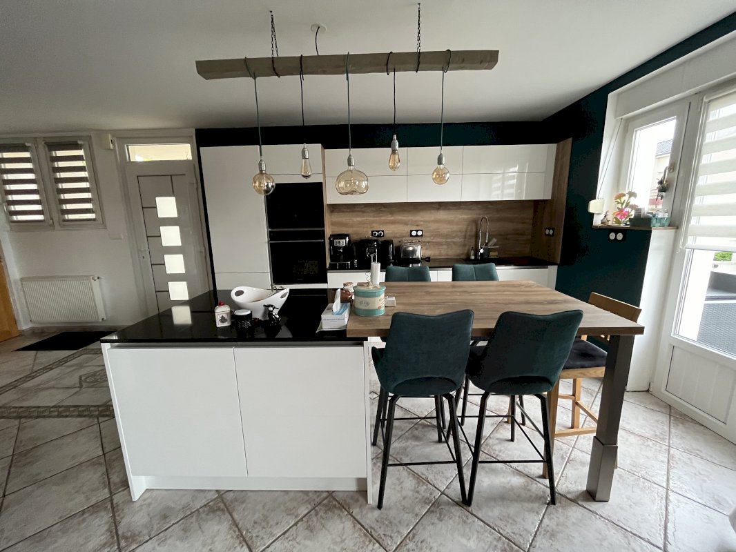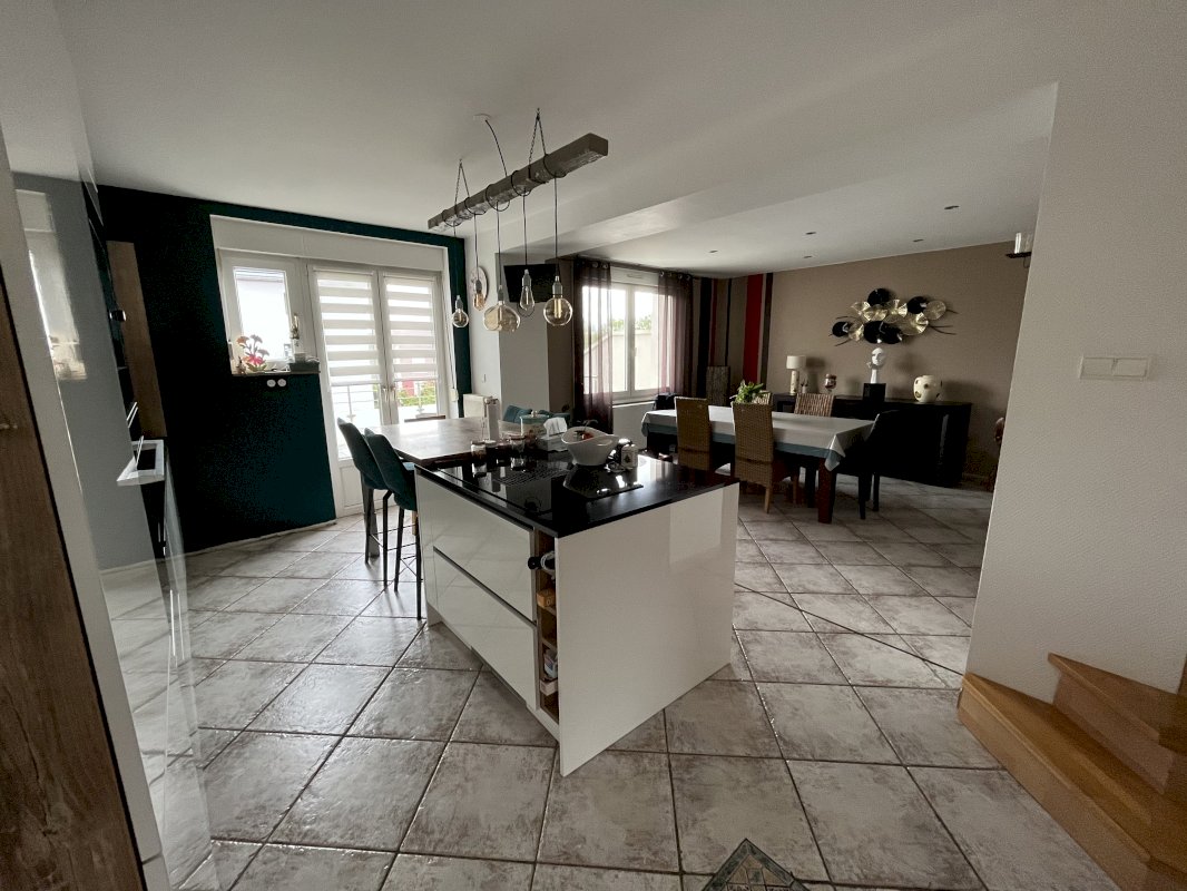 Maison jumelée à Marspich sur 5 ares avec garage double et piscine hors-sol chauffée.