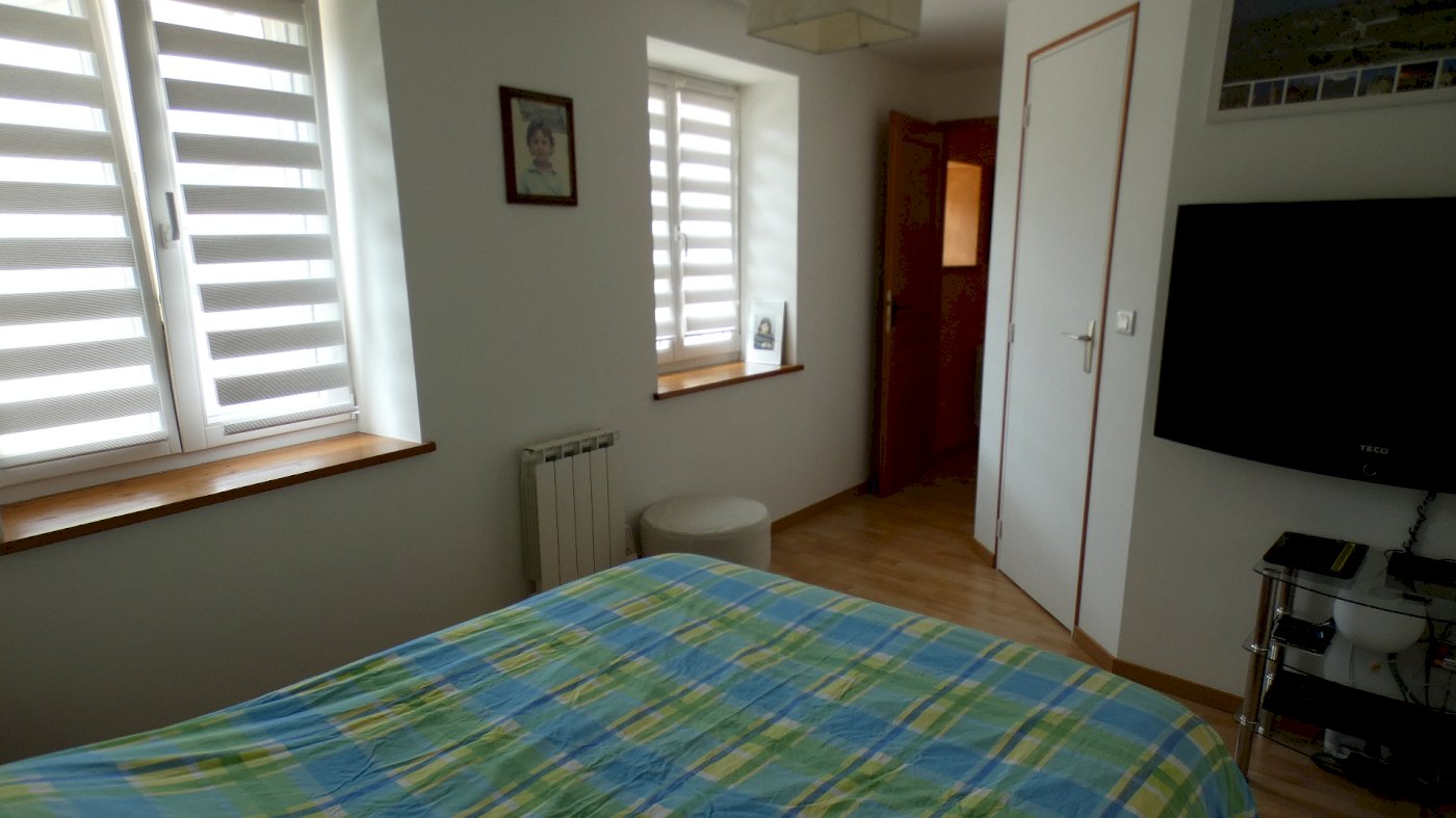 Au 2ème étage une grande chambre avec fenêtre et 2 velux de 23,7 m² ainsi qu’une deuxième chambre de 12,7 m² avec fenêtre et velux.
