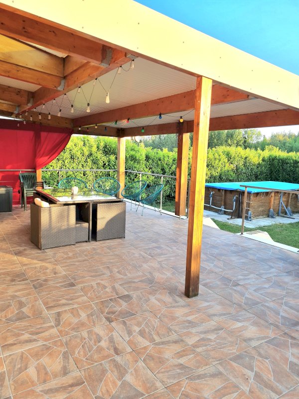 Maison avec pompe à chaleur réversible de 2021 et poêle à granulés pour les soirées d'hiver.
