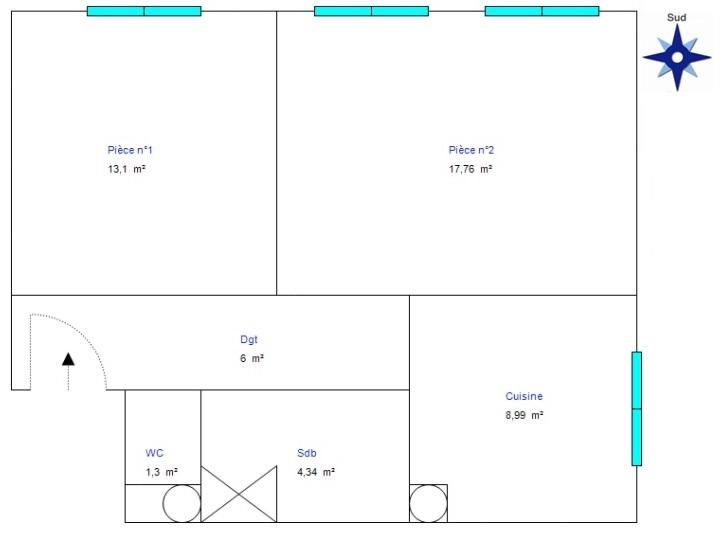 Appartement 2 pièces de 52 m²