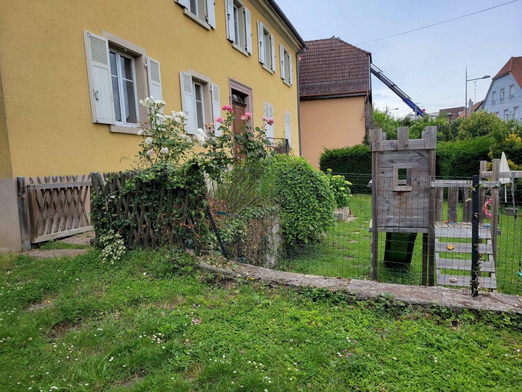 Au centre de Riedisheim, proche de tous les commerces et services, situé à 5’ de la gare de Mulhouse et à 20’ de l’aéroport, appartement à vendre, 3 pièces sur 67 m2, au sein d’une copropriété de 5 appartements, classée au patrimoine de la ville, avec jardin commun.