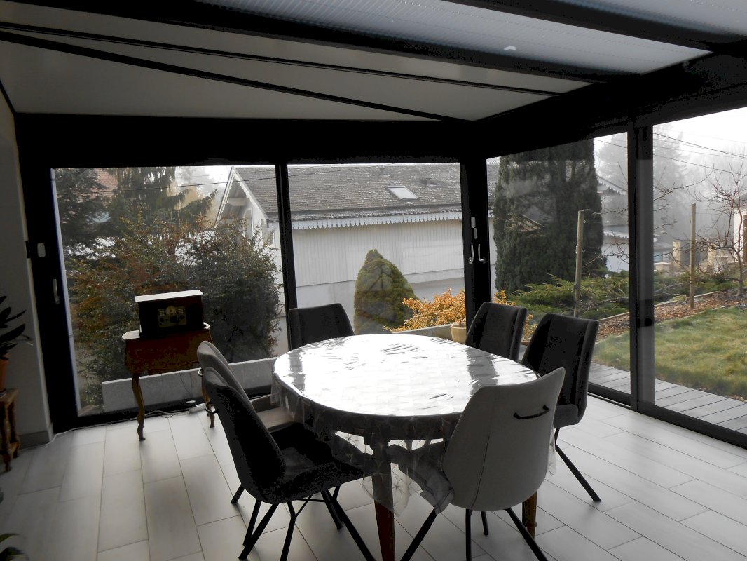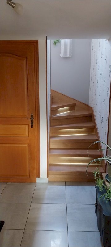 A l'étage vous trouverez une pièce de vie de 40 M2 (salon + extension véranda), 1 cuisine ouverte et aménagée, 1 poêle à bois. Le mode de chauffage : chaudière gaz.