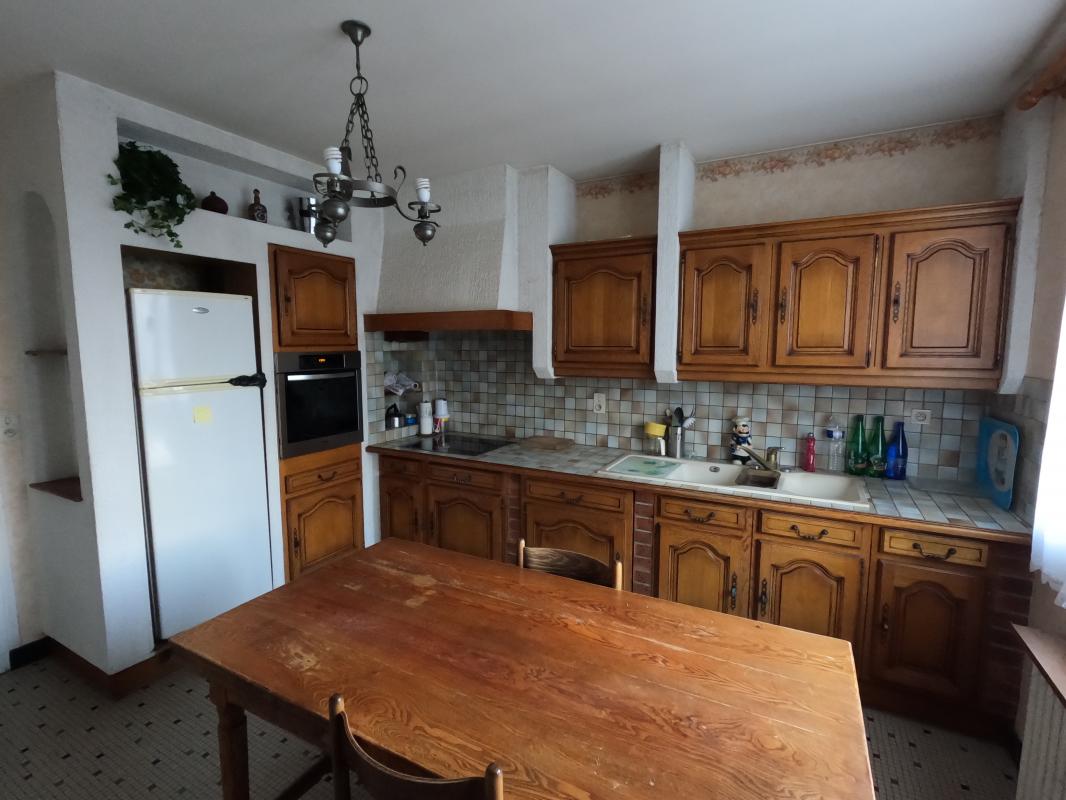 à l’étage 90 m2 répartis comme suit: dégagement donnant sur le séjour (avec 2°cheminée) de 25 m2, cuisine équipée de 12 m2, 3 chambres (15 m2, 14 m2 et 10m2) 1 salle de bains avec petite cabine balnéothérapie , WC, balcon