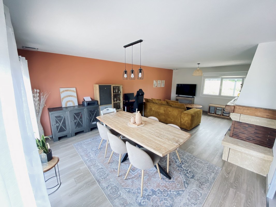 - au rez-de-chaussée surélevé (95 m²) : entrée avec placards et penderie, séjour lumineux, cuisine équipée avec accès sur une grande terrasse de 50m² (pergola) et jardin, salle de douche, WC et 3 chambres.