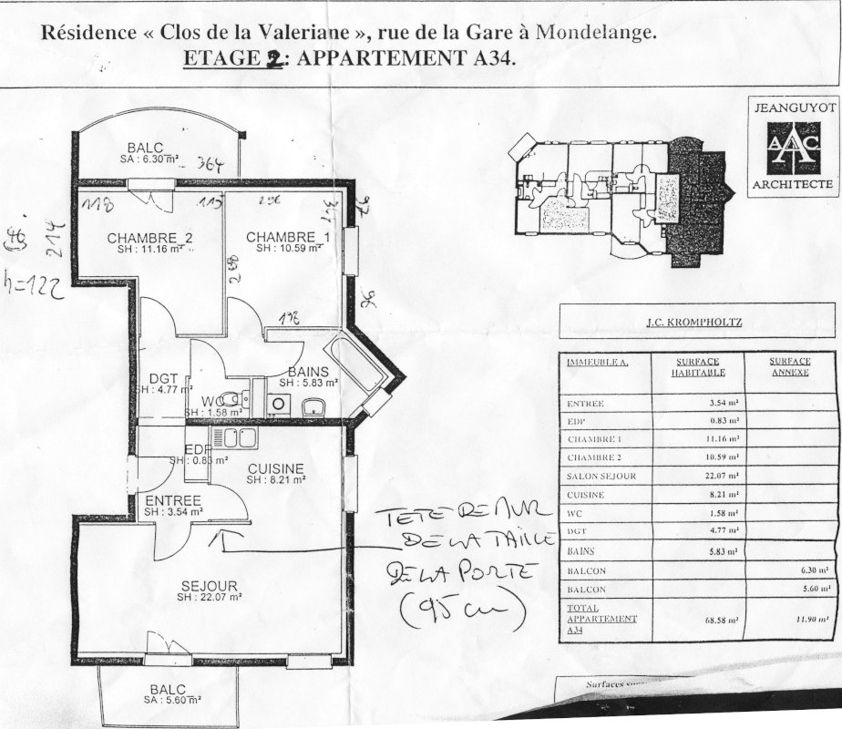 Appartement de type F3 de 69 m² au 2° étage d’une résidence récente à Mondelange. Idéalement situé à deux pas du centre-ville d’Hagondange et de sa gare SNCF.