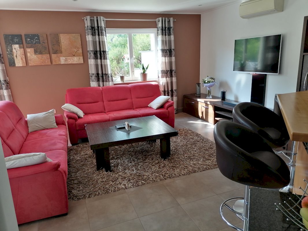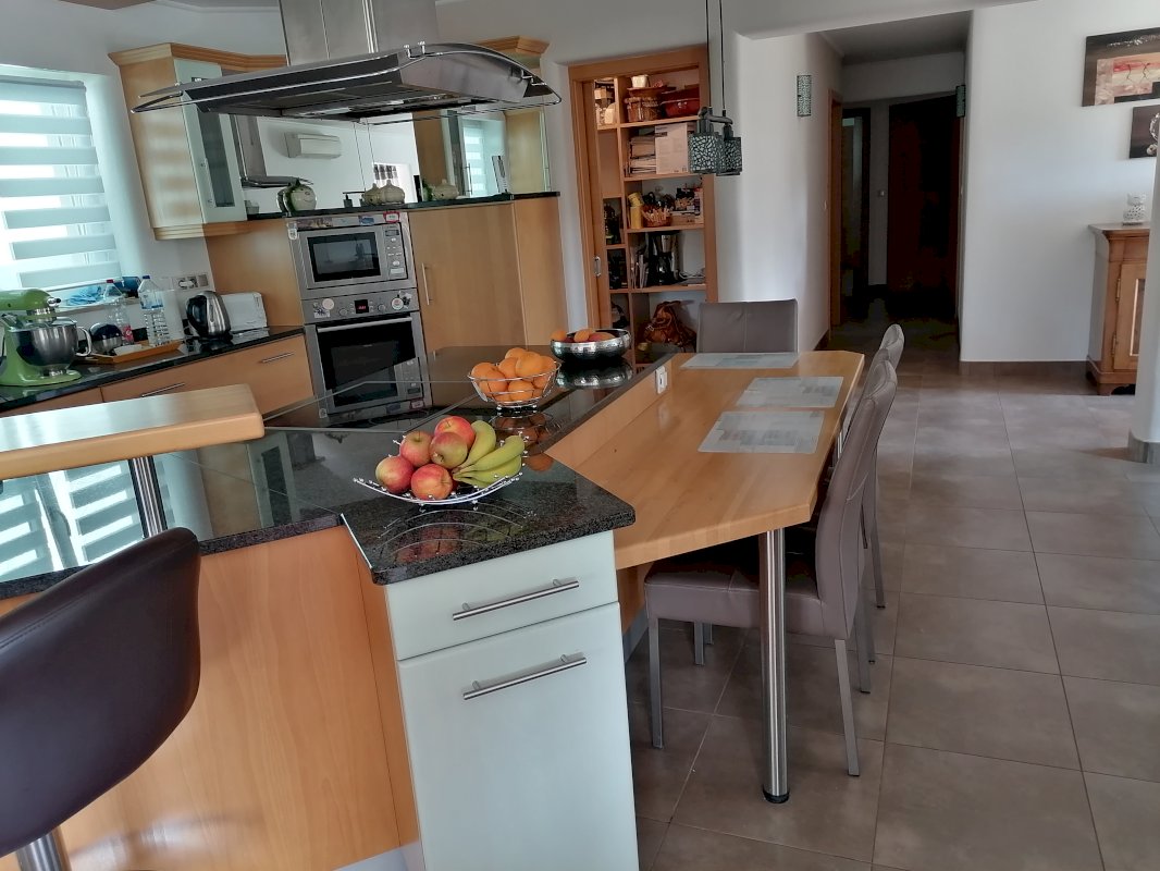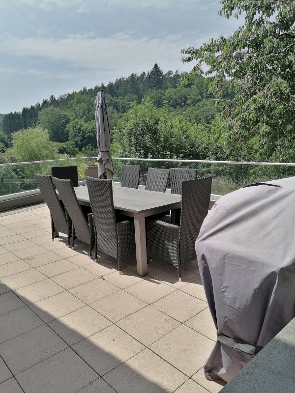 L entrée lumineuse donne accès à l espace cuisine, ouvert sur un salon-séjour. Une baie vitrée vous permet d accéder à une grande terrasse, qui surplombe notre belle vallée.